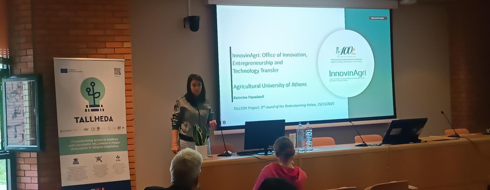 The Agricultural University of Athens (AUA) welcomed partners, researchers, students, and industry stakeholders for the 3rd Round of the TALLHEDA Brainstorming Action, held from 24–26 November 2025. Organized by AUA’s Informatics Laboratory, the three-day event brought together experts from Greece, Belgium, and Serbia to explore advancements in digital agriculture, AI-driven decision making, data sharing, and emerging smart-farming technologies.